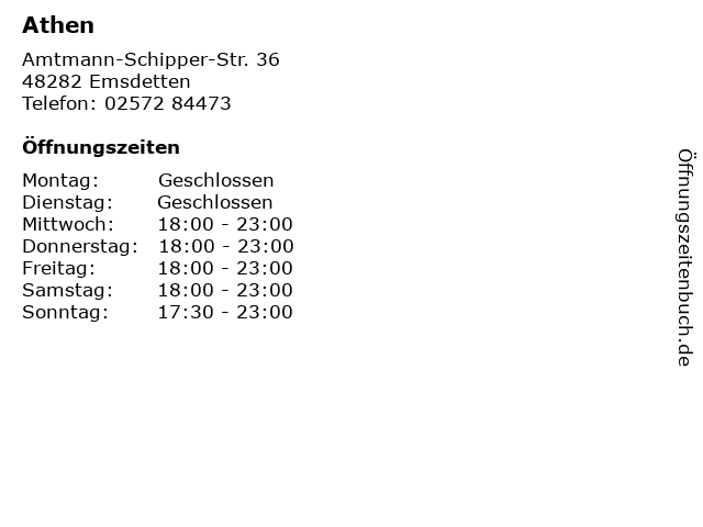 | Öffnungszeiten Athen in Emsdetten anzeigen | |