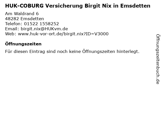 | HUK-COBURG Versicherung Birgit Nix in Emsdetten anrufen | |