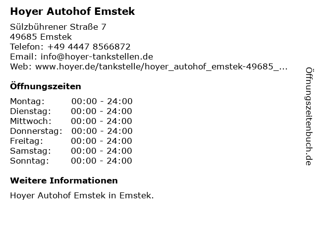 | Öffnungszeiten Hoyer Autohof Emstek in Emstek anzeigen | |