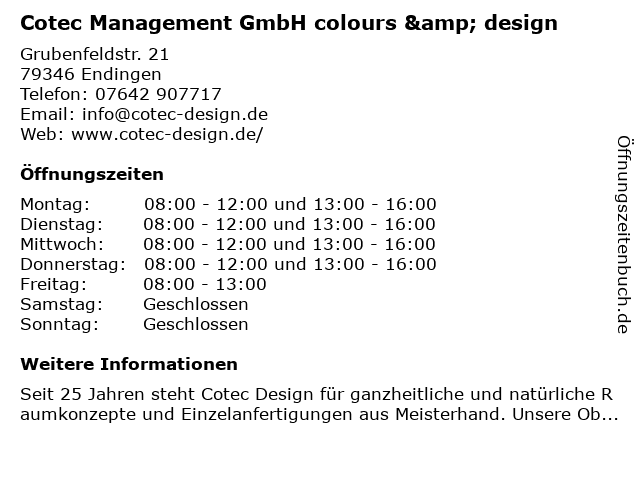 Branchen & Suchbegriffe zu Cotec Management GmbH colours & design:colours, cotec, design, management |