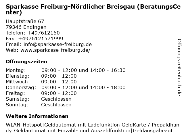 Branchen & Suchbegriffe zu Sparkasse Freiburg-Nördlicher Breisgau (Filiale):breisgau, nördlicher, sparkasse |