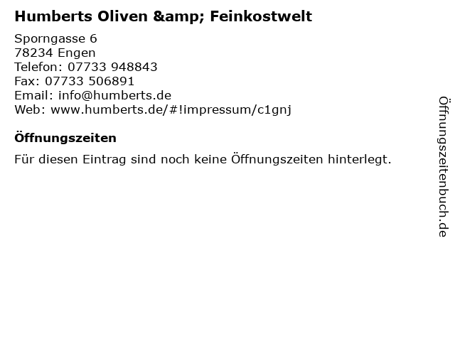 | Öffnungszeiten Humberts Oliven & Feinkostwelt in Engen anzeigen | |