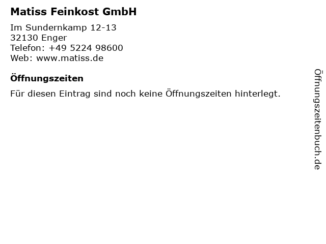 | Öffnungszeiten Matiss Feinkost GmbH in Enger anzeigen | |