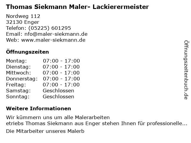 4 Hans-Hermann Siekmann Schornsteinfegermeister Elke (Entfernung: 4,59 km) August-Griese-Str. 24, 32130 Enger 6 |