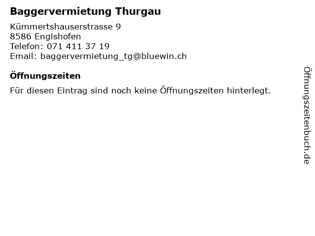 | Öffnungszeiten Baggervermietung Thurgau in Engishofen anzeigen | |