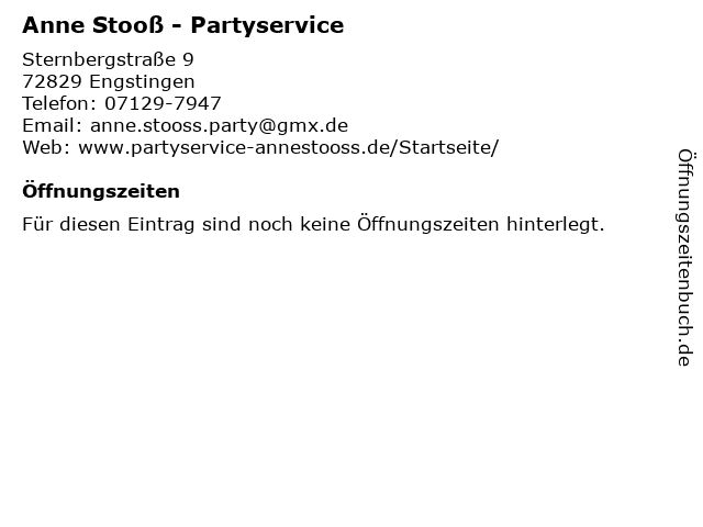 Öffnungszeiten Anne Stooß - Partyservice in Engstingen anzeigen | |