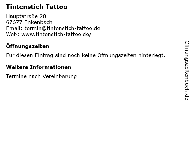 | Öffnungszeiten Tintenstich Tattoo in Enkenbach anzeigen | |