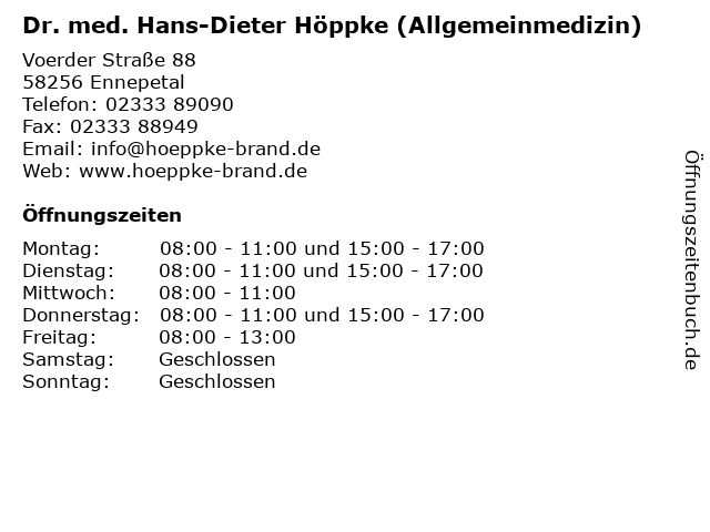 Branchen & Suchbegriffe zu Dr. med. Hans-Dieter Höppke (Allgemeinmedizin):allgemeinmedizin, arzt, behandlung, dieter, dr., hans, höppke, med., medizin, sprechzeiten |