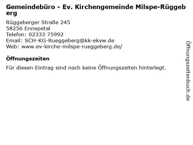 | Gemeindebüro - Ev. Kirchengemeinde Milspe-Rüggeberg anrufen | |