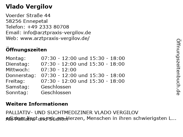 | Öffnungszeiten Vlado Vergilov in Ennepetal anzeigen | |