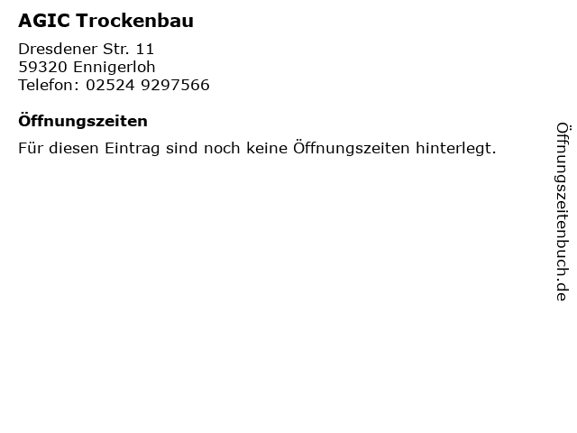 | Öffnungszeiten AGIC Trockenbau in Ennigerloh anzeigen | |