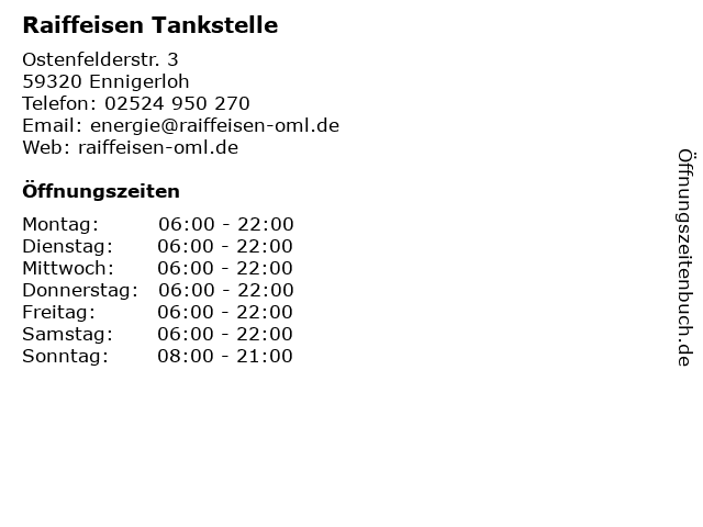 | Telefonnummer Raiffeisen Tankstelle in Ennigerloh (02524 950 270) anrufen | |