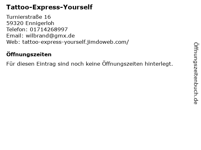 | Öffnungszeiten Tattoo-Express-Yourself in Ennigerloh anzeigen | |