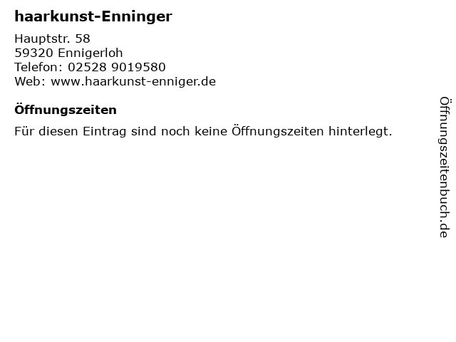| Öffnungszeiten haarkunst-Enninger in Ennigerloh anzeigen | |