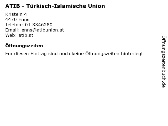 | Öffnungszeiten ATIB - Türkisch-Islamische Union in Enns anzeigen | |