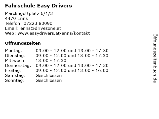 Öffnungszeiten Fahrschule Easy Drivers in Enns anzeigen | |