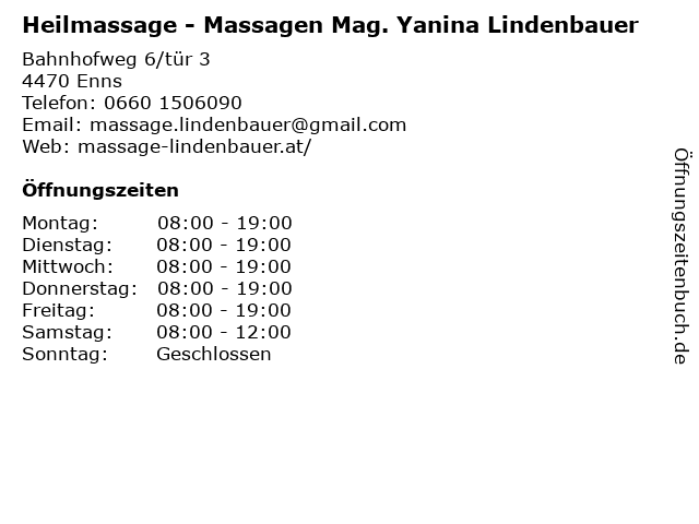 Branchen & Suchbegriffe zu Heilmassage - Massagen Mag. Yanina Lindenbauer:heilmassage, lindenbauer, mag., massagen, massagezentrum, yanina |