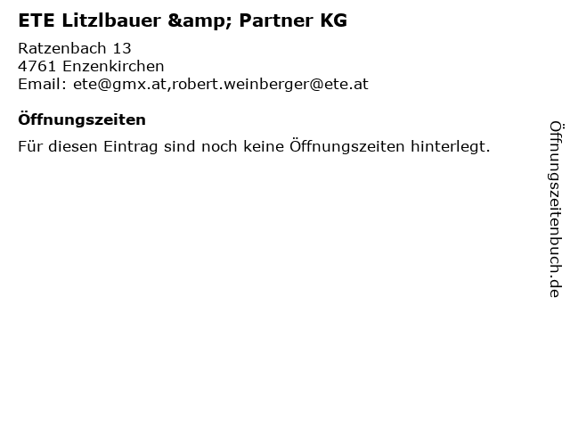 | Öffnungszeiten ETE Litzlbauer & Partner KG in Enzenkirchen anzeigen | |