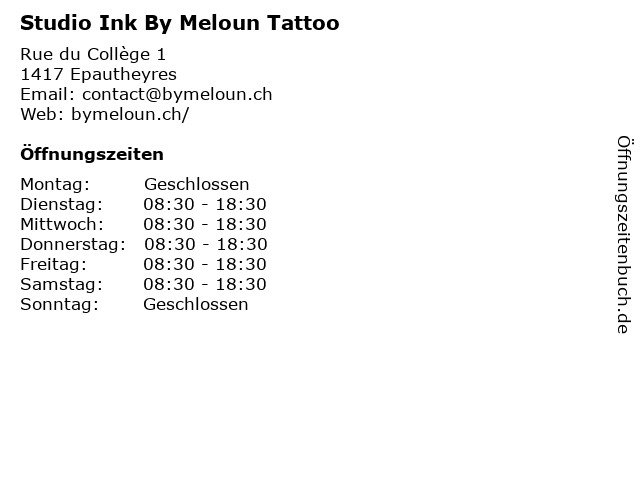 | Öffnungszeiten Studio Ink By Meloun Tattoo in Epautheyres anzeigen | |