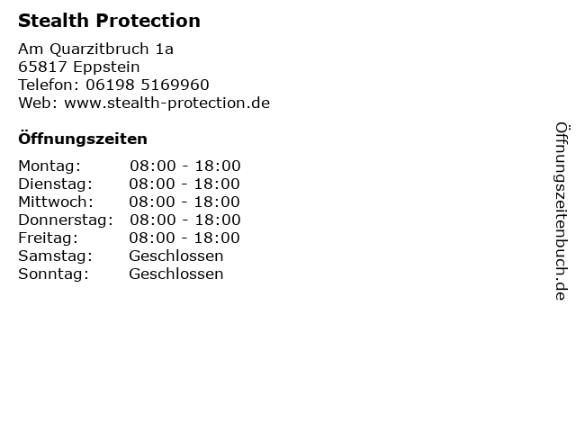 | Öffnungszeiten Stealth Protection in Eppstein anzeigen | |