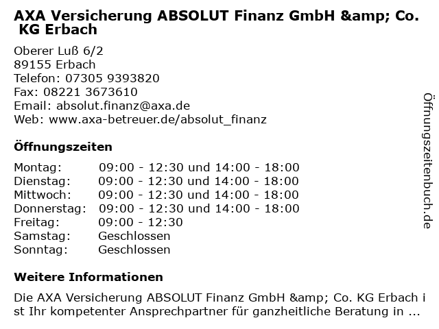 | Montag | 09:00-12:30 und 14:00-18:00 |