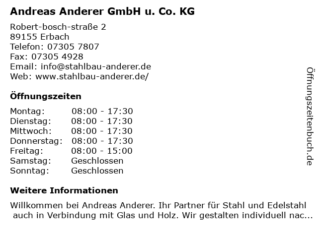 | Öffnungszeiten Andreas Anderer GmbH u. Co. KG in Erbach anzeigen | |
