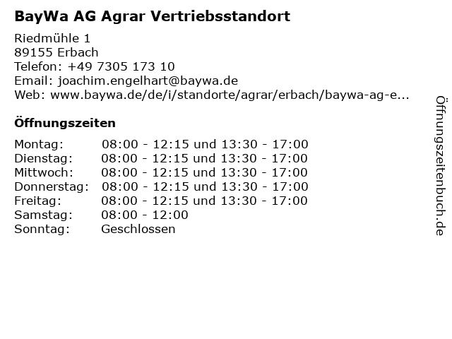 Öffnungszeiten BayWa AG Agrar Vertriebsstandort
