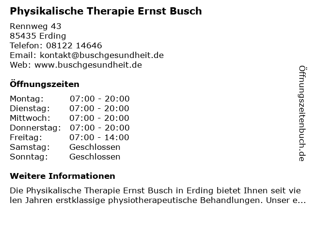 Branchen & Suchbegriffe zu Physikalische Therapie Ernst Busch:busch, ernst, physikalische, therapie |