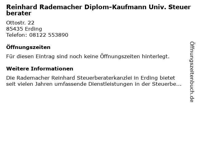Öffnungszeiten Reinhard Rademacher Diplom-Kaufmann Univ. Steuerberater