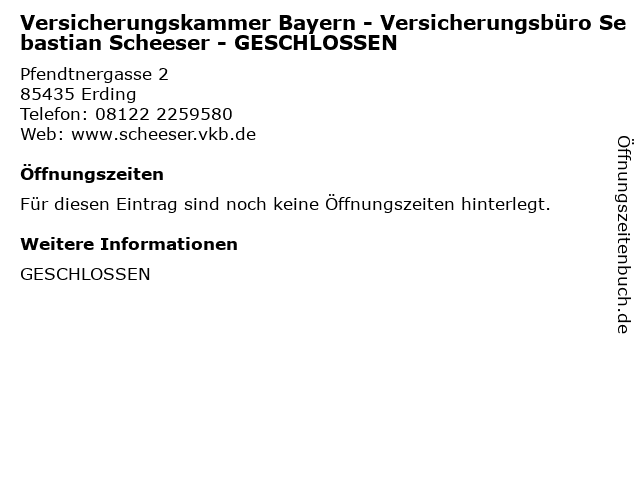 | Versicherungskammer Bayern - Versicherungsbüro Sebastian Scheeser - GESCHLOSSEN anrufen | |