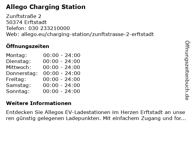 | Öffnungszeiten Allego Charging Station in Erftstadt anzeigen | |