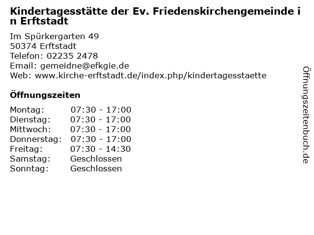 Branchen & Suchbegriffe zu Kindertagesstätte der Ev. Friedenskirchengemeinde in Erftstadt:100, bis, ev, ev., evangelische, friedenskirchengemeinde, horte, kindergärten, kindertagesstätte, plätze |