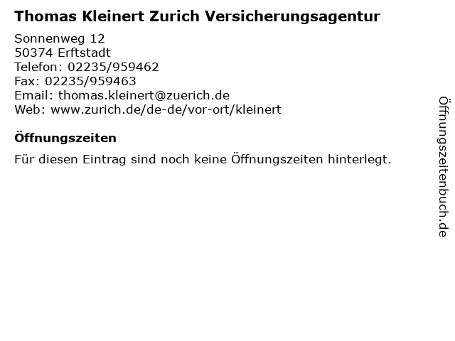 | Thomas Kleinert Zurich Versicherungsagentur anrufen | |