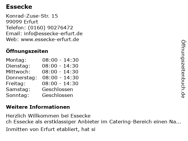 | Öffnungszeiten Essecke in Erfurt anzeigen | |