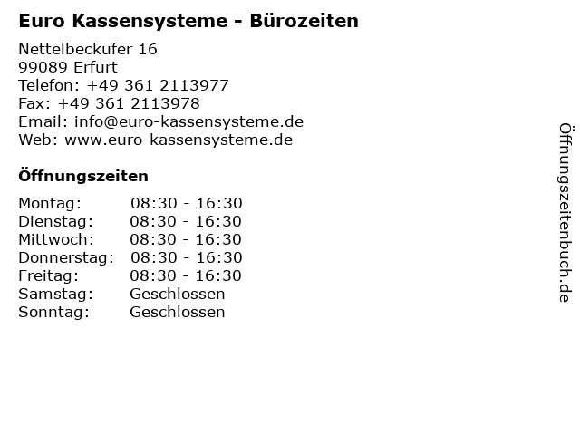 Branchen & Suchbegriffe zu Euro Kassensysteme - Bürozeiten:bürozeiten, euro, gastrosysteme, kassensysteme, software, wägetechnik |
