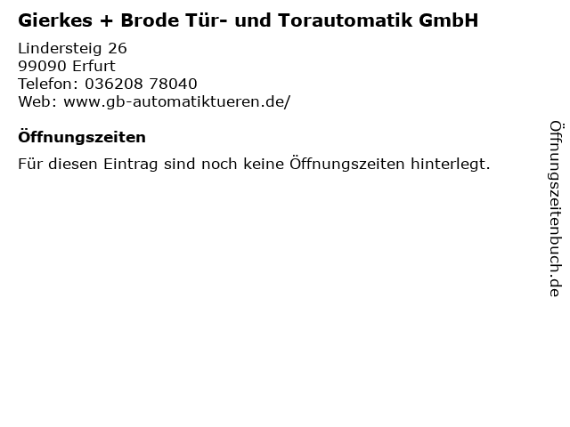 | Gierkes + Brode Tür- und Torautomatik GmbH anrufen | |