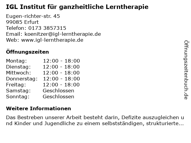 Branchen & Suchbegriffe zu IGL Institut für ganzheitliche Lerntherapie:ausbildungszentrum, fachschule, ganzheitliche, igl, institut, lerntherapie |