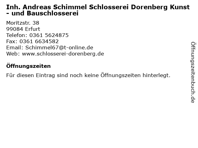 | Inh. Andreas Schimmel Schlosserei Dorenberg Kunst - und Bauschlosserei anrufen | |