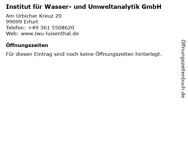 | Institut für Wasser- und Umweltanalytik GmbH anrufen | |