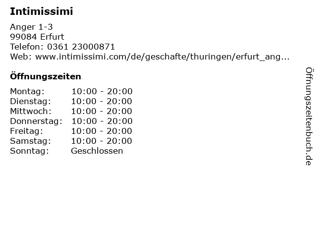 | Telefonnummer Intimissimi in Erfurt (0361 23000871) anrufen | |