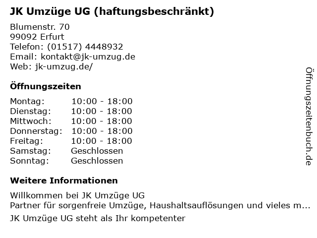 Branchen & Suchbegriffe zu JK Umzüge UG (haftungsbeschränkt):(haftungsbeschränkt), betriebsauflösungen, eiltransporte, einlagerungen, einrichten von halteverbotszonen, entrümpeln von messiewohnungen, entrümpelung bei extremfällen, entrümpelungsservice, entrümpelungsunternehmen, exklusive umzüge, firmenauflösungen, firmenumzüge, fullservice-umzug, geschäftsauflösungen, haftungsbeschränkt, hartz-iv-umzüge, jk, kleinumzüge, küchentransporte, küchenumzüge, montageservice, privatumzüge, seniorenumzüge, single-umzüge, ug, umzug ins betreute wohnen, umzugsfirma, umzüge, wohnungsauflösungen |