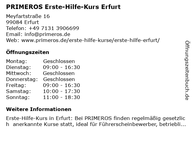 Branchen & Suchbegriffe zu PRIMEROS Erste-Hilfe-Kurs Erfurt:erste, erste hilfe am unfallort, erste hilfe kurs, erste-hilfe, erste-hilfe-kurs, führerschein sehtest, herz-lungen-wiederbelebung, herzinfarkt, hilfe, kurs, primeros, schlaganfall, stabile seitenlage, verbandmaterial, weiterbildung |