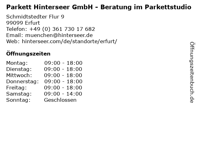 1 Parkett Hinterseer GmbH - Groß- und Einzelhandel (Entfernung: 0,00 km) Schmidtstedter Flur 9, 99099 Erfurt 6 |