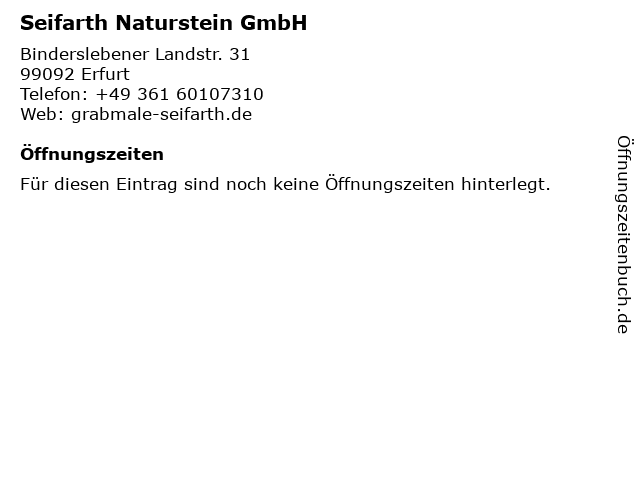 | Öffnungszeiten Seifarth Naturstein GmbH in Erfurt anzeigen | |