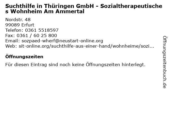 | Suchthilfe in Thüringen GmbH - Sozialtherapeutisches Wohnheim Am Ammertal anrufen | |