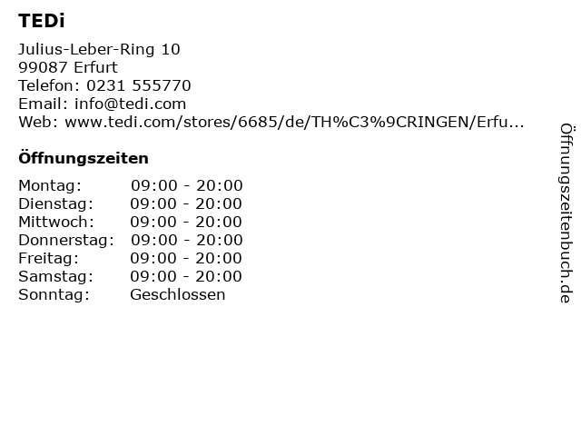 TEDi in Erfurt | Telefonnummer, Öffnungszeiten und Adresse