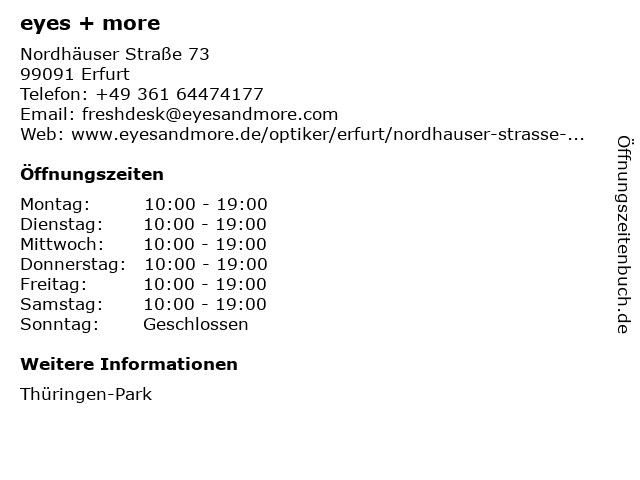 | Öffnungszeiten eyes + more in Erfurt anzeigen | |