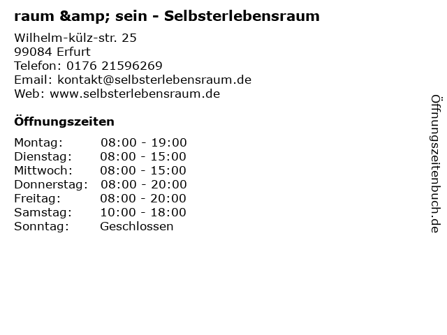 3 Dipl.-Ing.(FH) raum 23 Atelier für Objektplanung u. Innendesign Sandra Dörnfeld (Entfernung: 1,58 km) Mühlhäuser Str. 12, 99092 Erfurt 4 Yoga-Shala, Raum zum bewegen und entspannen (Entfernung: 1,92 km) Leipziger Platz Platz 9, 99085 Erfurt 6 |