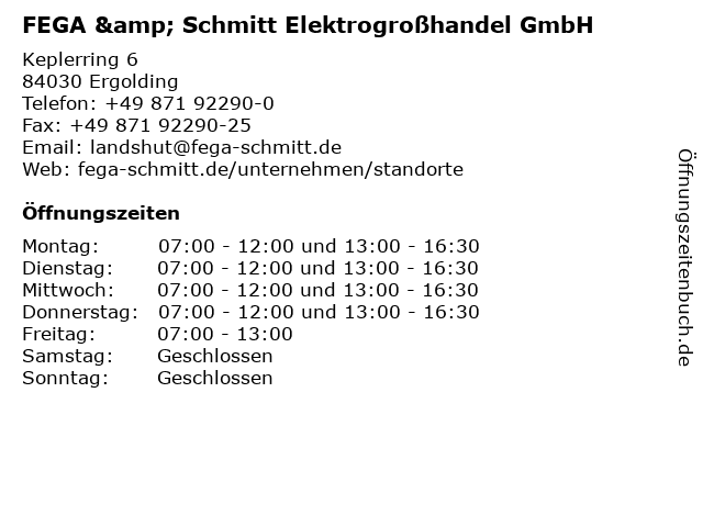 Branchen & Suchbegriffe zu FEGA & Schmitt Elektrogroßhandel GmbH:beleuchtung, elektrogroßhandel, elektrogroßhändler, elektroinstallationen, elektromaterialien, fega, installationsmaterialien, kabel, schalter, schmitt, steckdosen |
