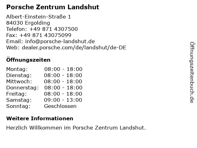 | Öffnungszeiten Porsche Zentrum Landshut in Ergolding anzeigen | |